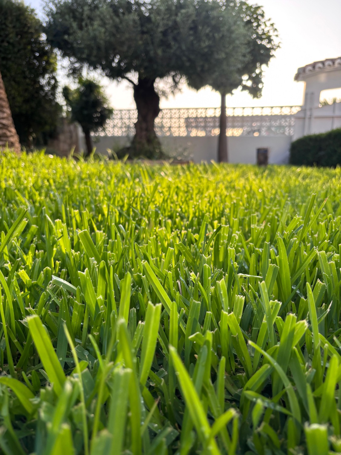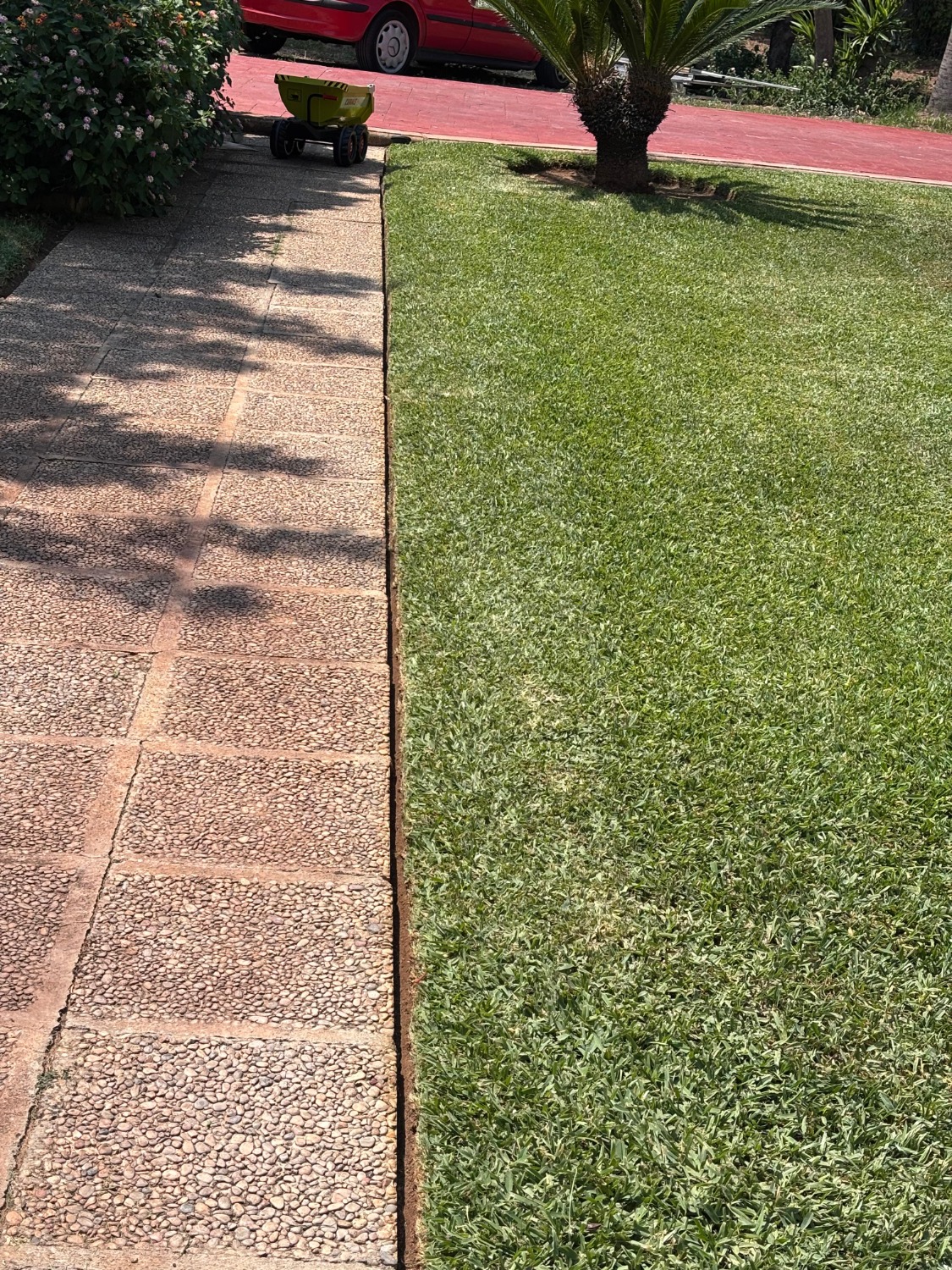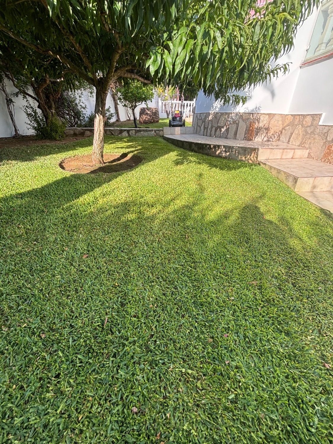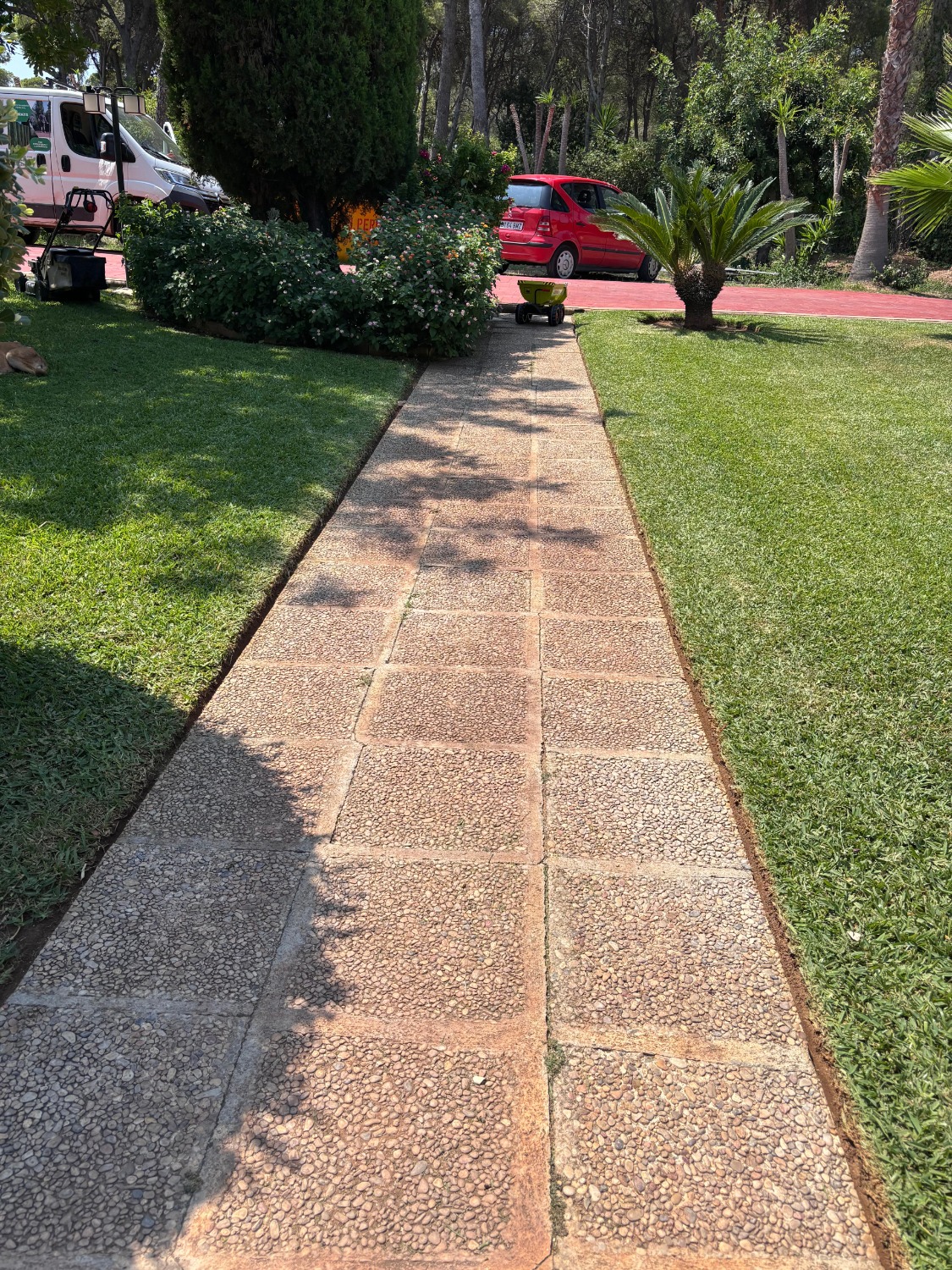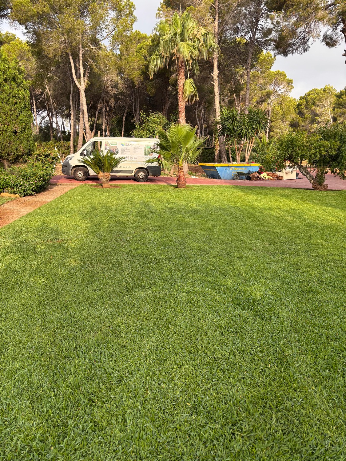 Mowing is the most visible and crucial practice for grass health. We make mowing with the appropriate frequency and height for each type of grass and time of the year. A correct mowing stimulates lateral growth, increasing the density and resistance of the meadow, and prevents the appearance of weeds and diseases. We adjust our machines to make a clean cut that does not tear the leaf, thus avoiding pathogens input points.