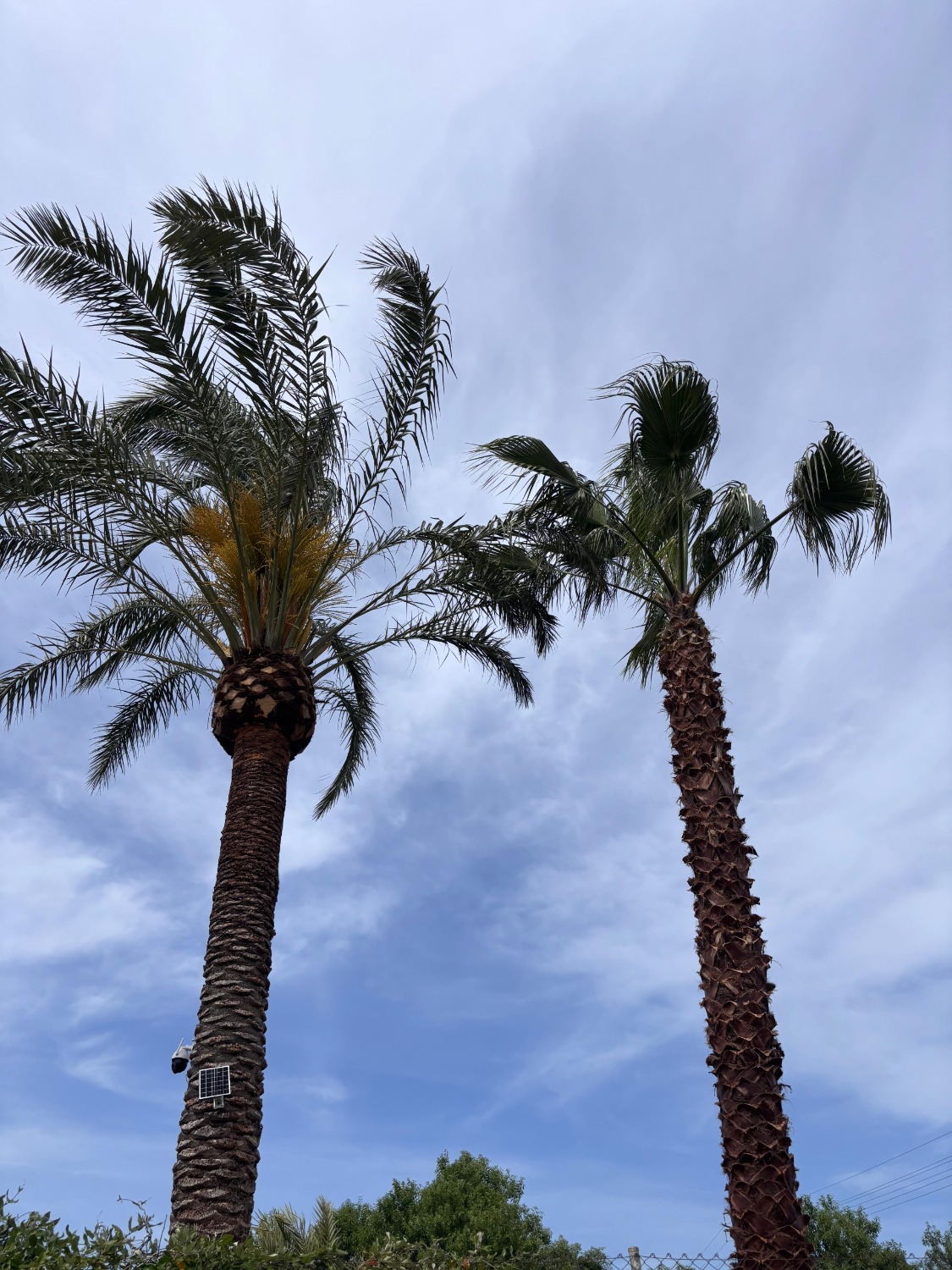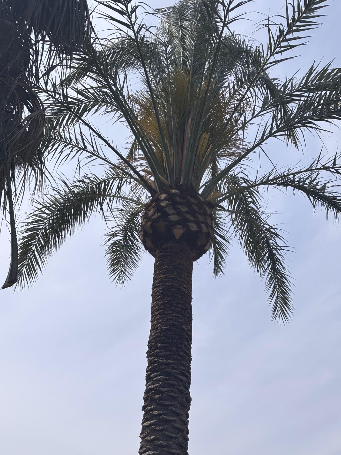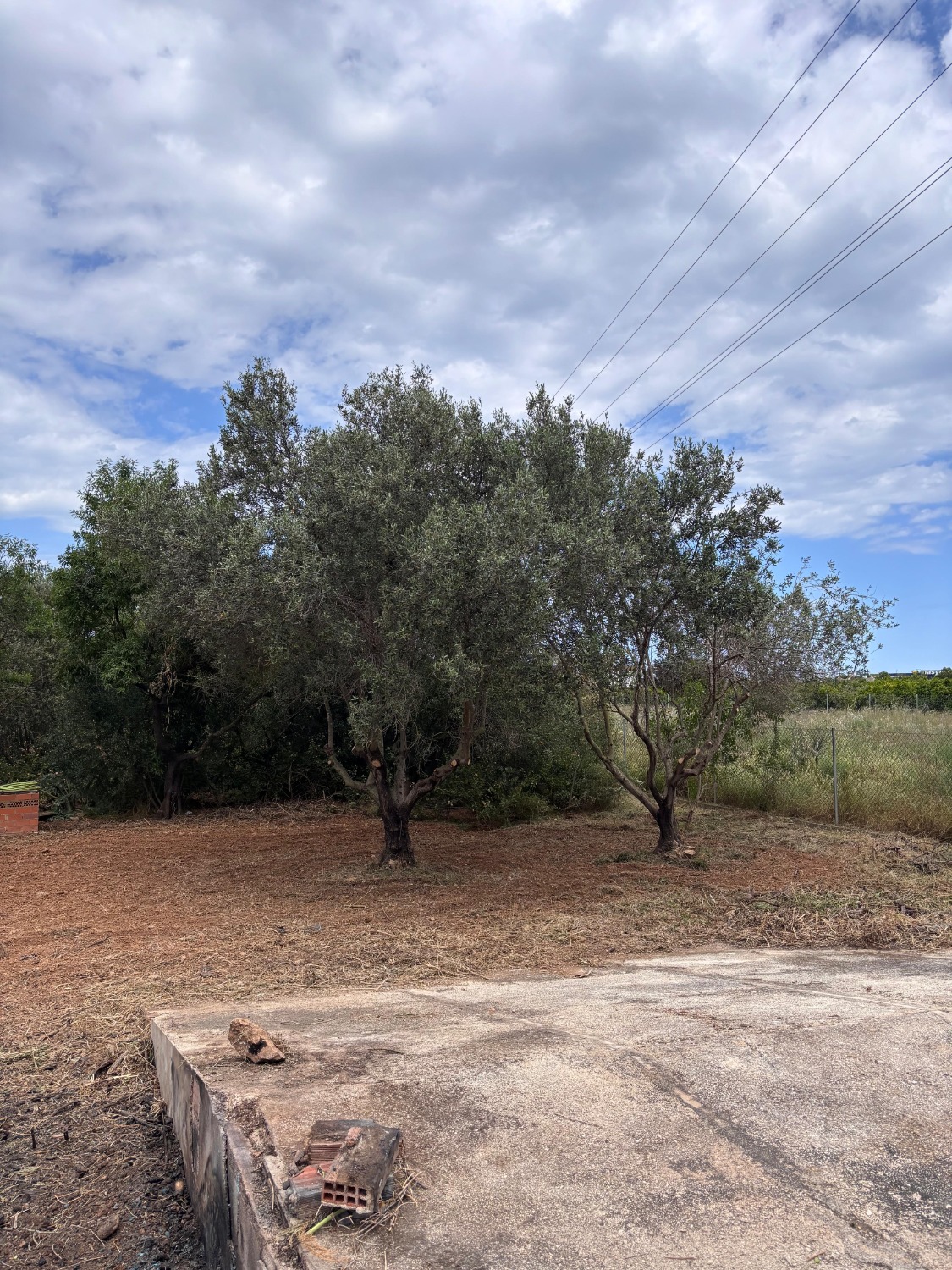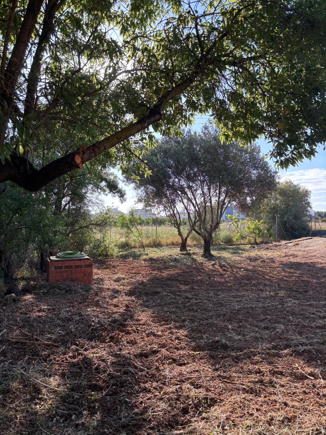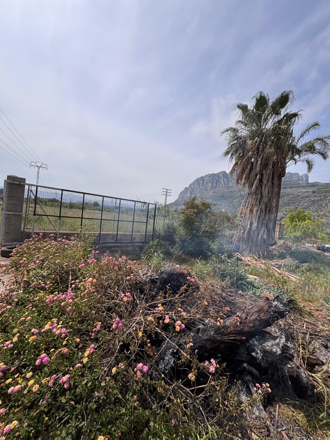 The work began with specialized pruning of a date palm (Phoenix dactylifera) and Washingtonia robusta, eliminating dry fronds and deteriorated elements to improve aesthetics, safety and plant health. Next, the olive and almond trees were pruned, applying renewal and training criteria to promote fruiting and optimize the crown structure.