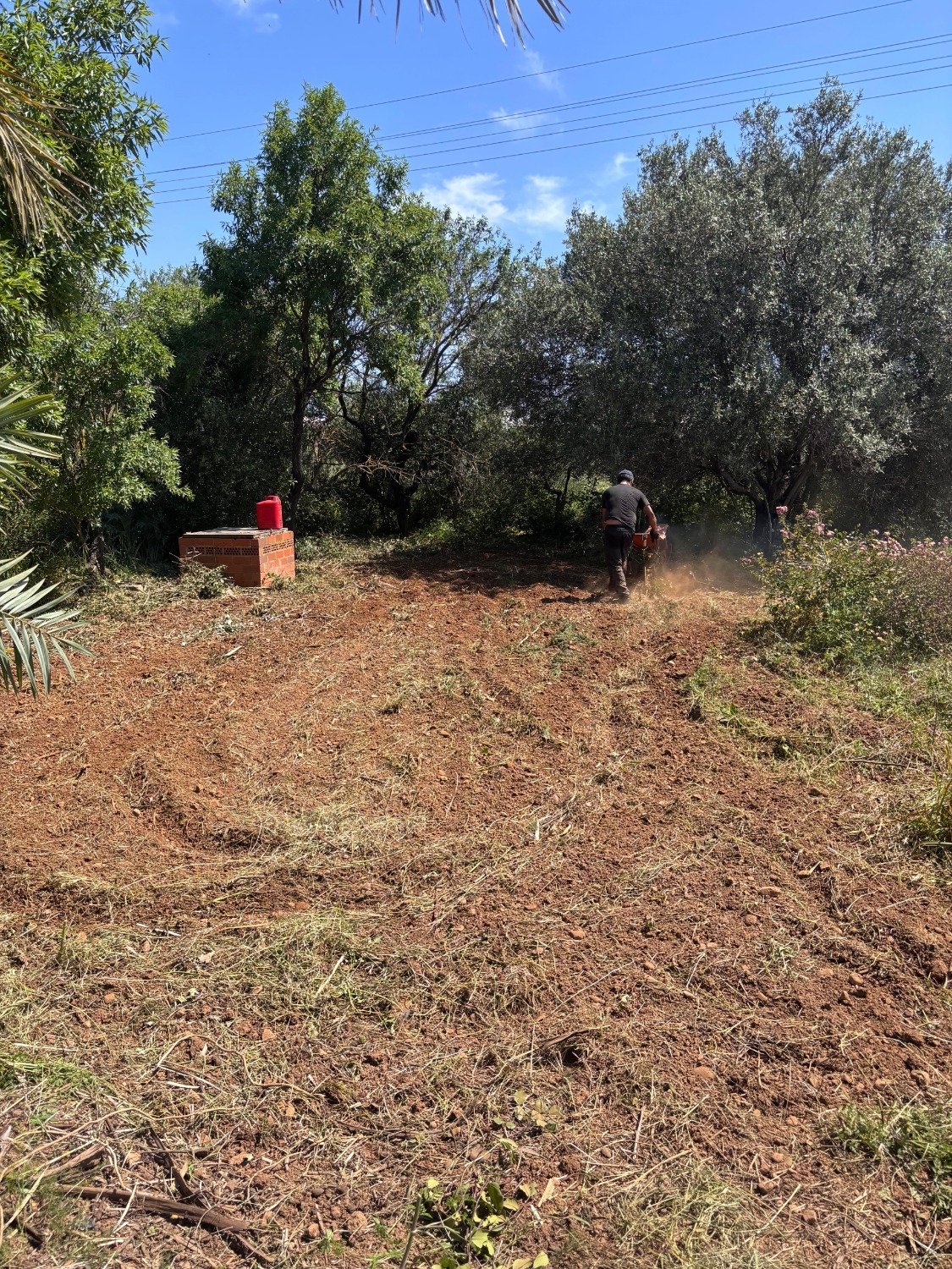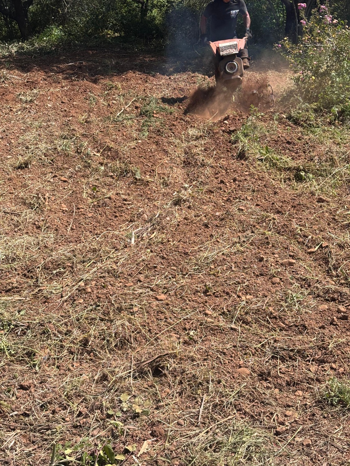 The land was subjected to mechanical clearing, eliminating spontaneous vegetation and crop remains, which allowed the surface to be cleaned and the risk of fires reduced. Finally, surface plowing was carried out using a rotovator, in order to improve the texture of the soil, facilitate aeration and prepare the farm for future agricultural or landscaping work.