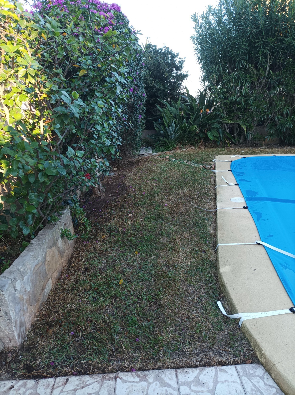 In EGASA landscaping and gardening, we complete a significant landscape improvement in a property located on Frigola 9, Dénia. This project focused on the installation of high quality artificial grass around the pool and the application of decorative white gravel under existing hedges, completely transforming the outer space.